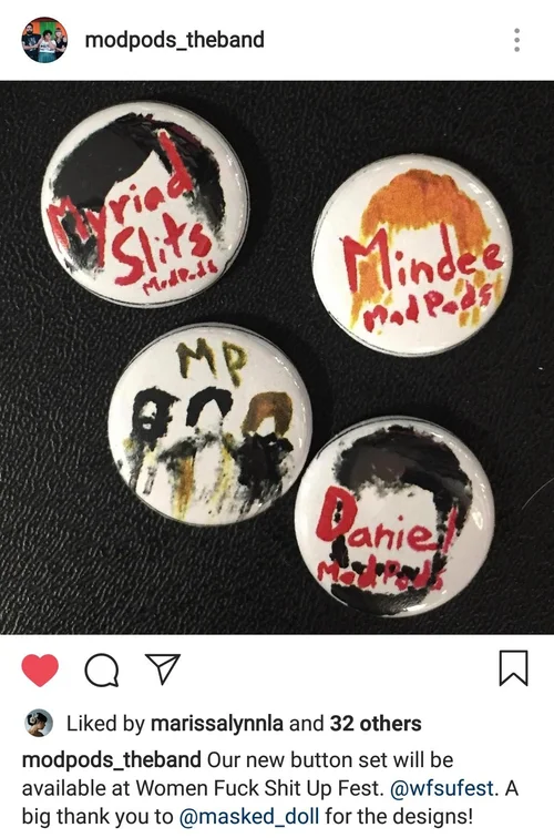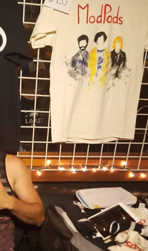 ModPods from Los Angeles contacted me via Instagram to create some illustrations for band merchandise to sell at show. I created a tee image and images for buttons on paper with acrylic paint. Images have been featured on merchandise on the bands instagram and ig pages of fans.
